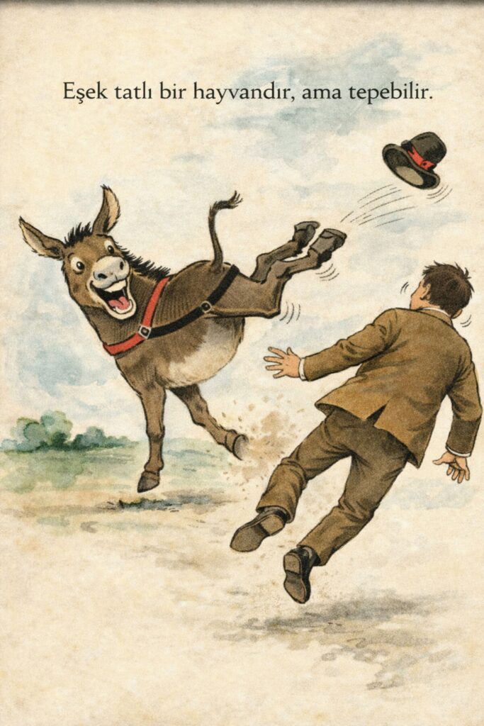 Eşek tatlı bir hayvandır, ama tepebilir!